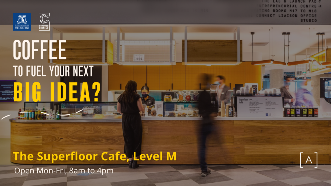 The Superfloor cafe offers a place for members of the precinct to convene over lunch with colleagues or to invite external partners to Melbourne Connect for meetings and networking over coffee.